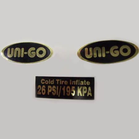 Decal set with two small Uni-Go stickers and tire pressure sticker